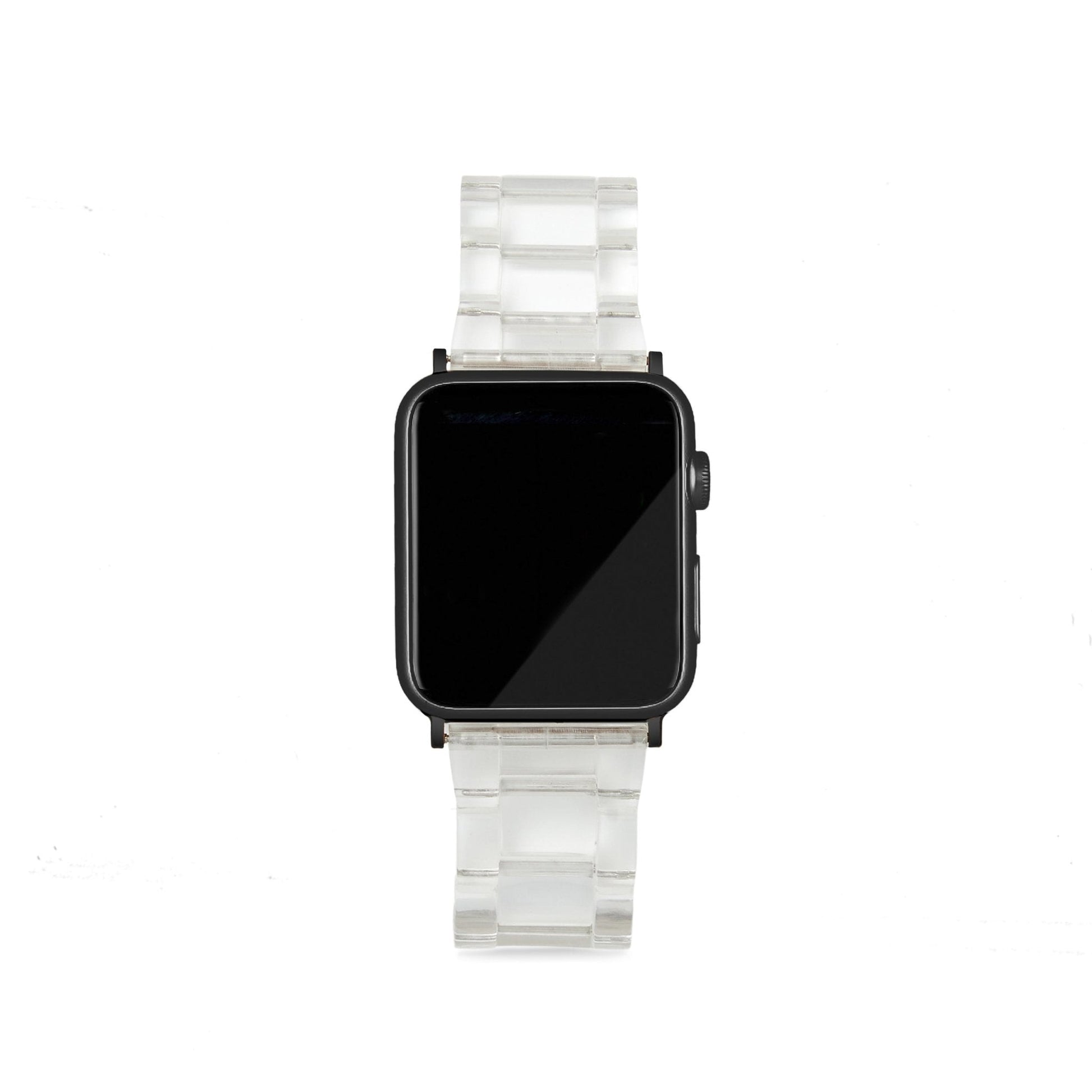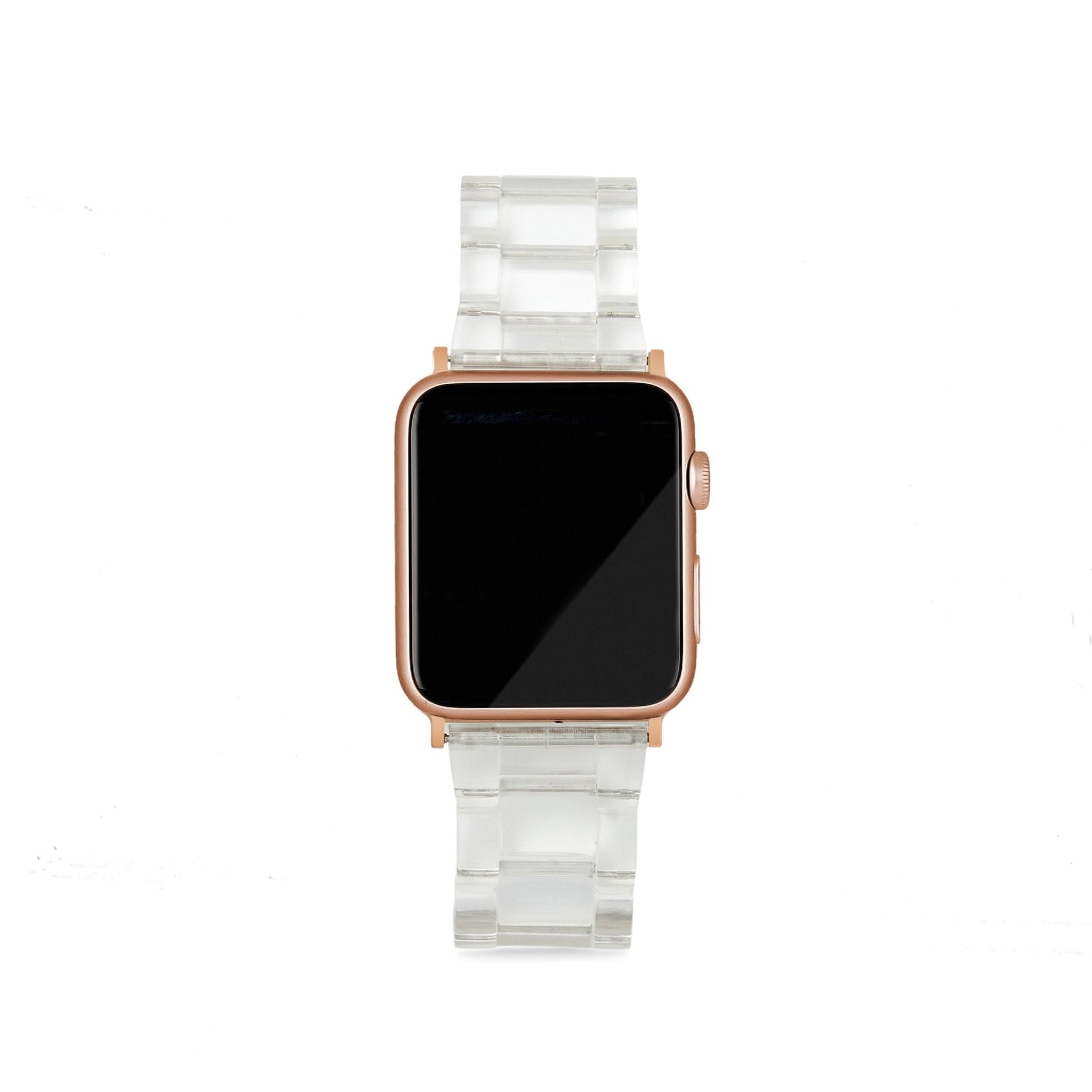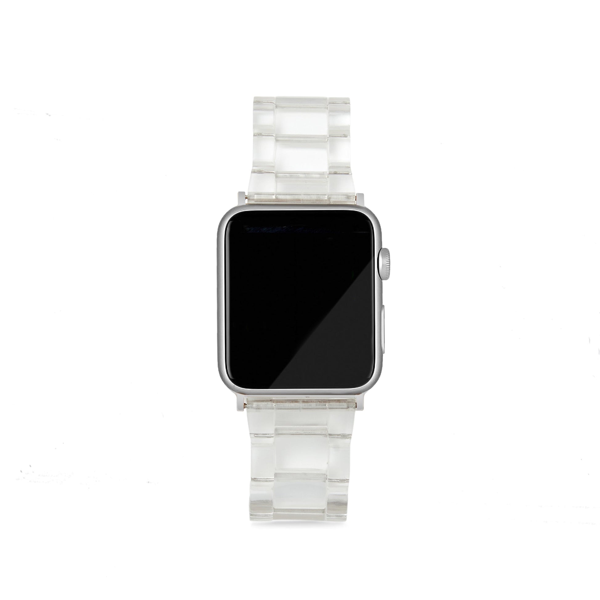 Let your personality speak for itself with our clear Apple Watch Band in 44mm! Crafted from durable Italian acetate, hypoallergenic, and stainless steel hardware, this transparent Apple Watch Band can be paired with any print, pattern, or mash-up of colors for any style maven. Adorn your clear Apple Watch Band with black, silver, or rose gold hardware—your choice. The transparent Apple Watch Band has an adjustment kit to fit any wrist size.