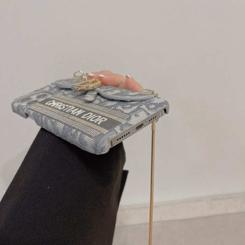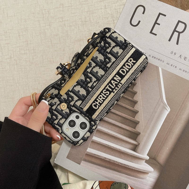 CD Black & Grey Fabric Card Bag Crossbody iPhone Case