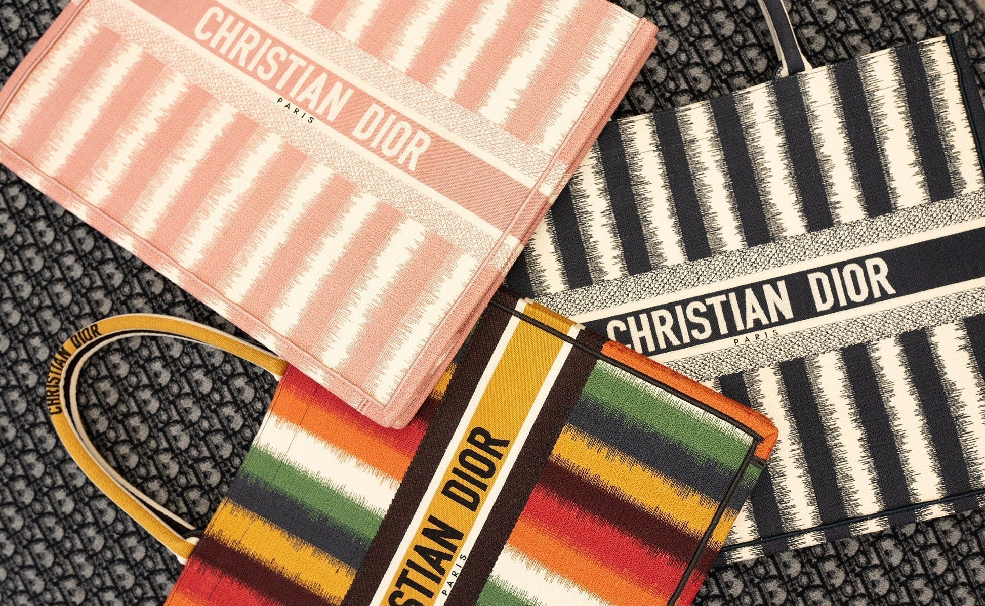 This Dior Book Tote in the large size is a super popular and versatile bag, which can be used every day and is the perfect travel, beach and pool bag for on holiday. Featured in this unique D-Stripes Embroidery for the 2021 Summer collection, it is an absolutely stunning piece.